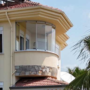 Der große Balkon ist vollständig verglast.